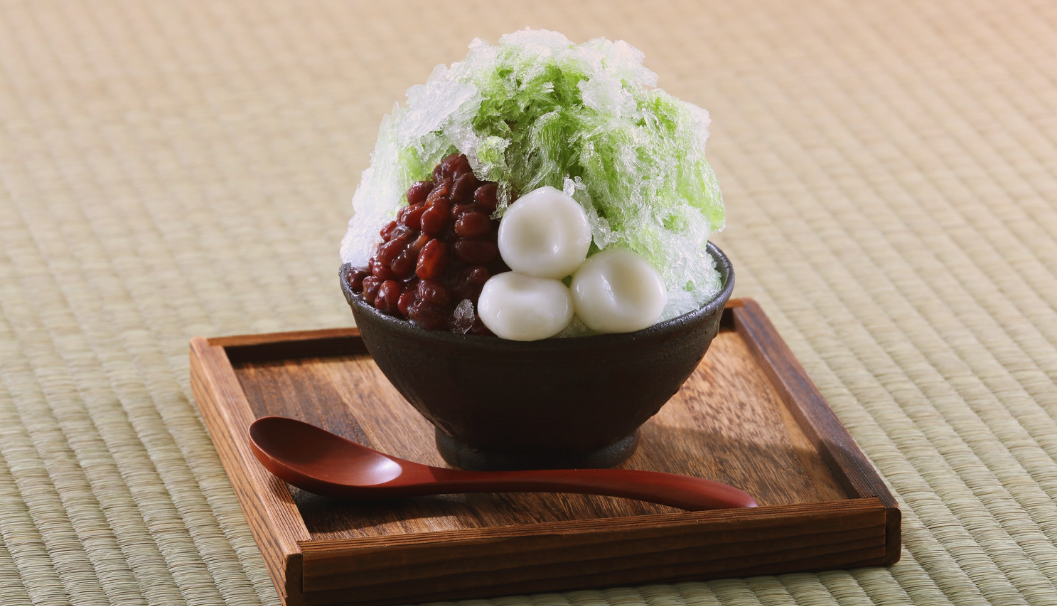 Kakigori: a Japanese shaved ice dessert flavored with syrup and a sweetener, often condensed milk.